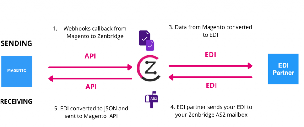 When you have integrated your Magento Commerce eCommerce store with EDI, your business is Magento Commerce-EDI enabled. With Zenbridge, you can become Magento Commerce EDI integrated with just a few configurations using Webhooks set-up.
