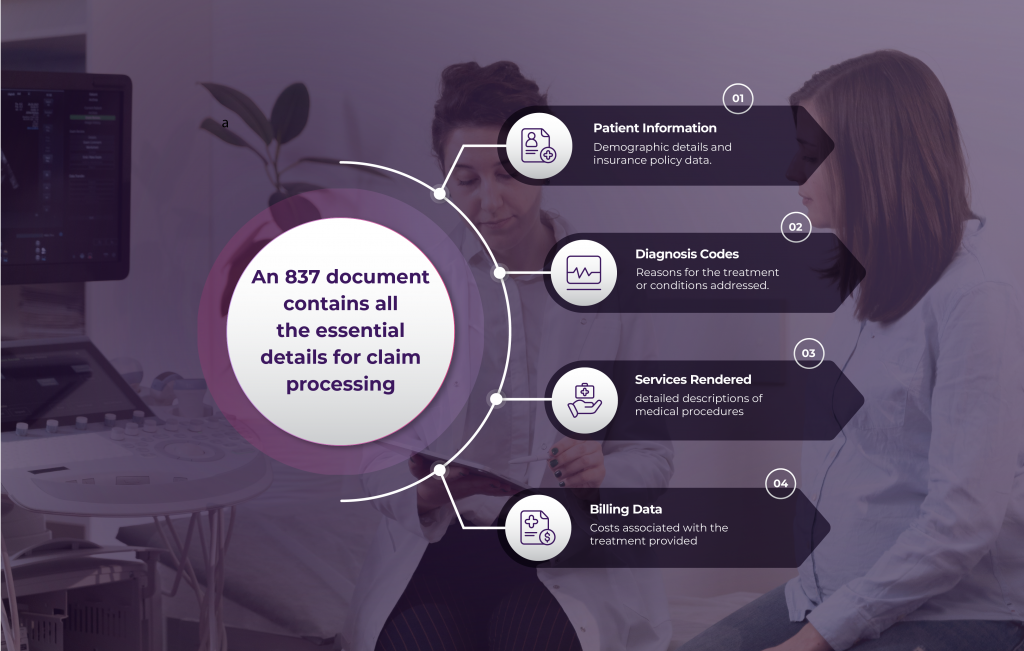 An 837 document contains all the essential details for claim processing:
