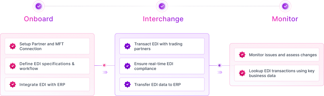 From first connection to full automation, we handle the heavy lifting. Get your EDI up and running without complexity & delays.